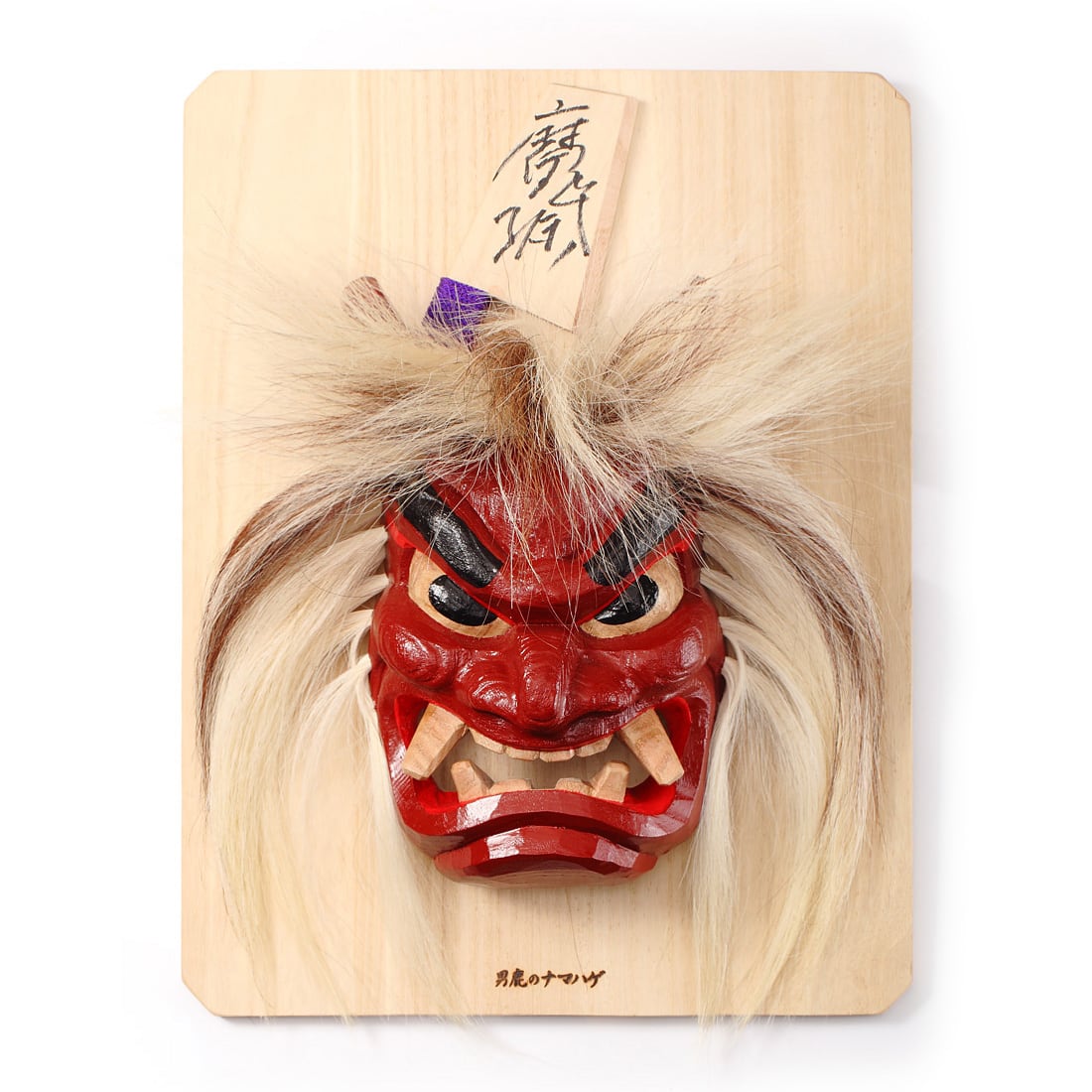 石川千秋作 木掘りなまはげ面 板付き9号(壁掛け用) 赤