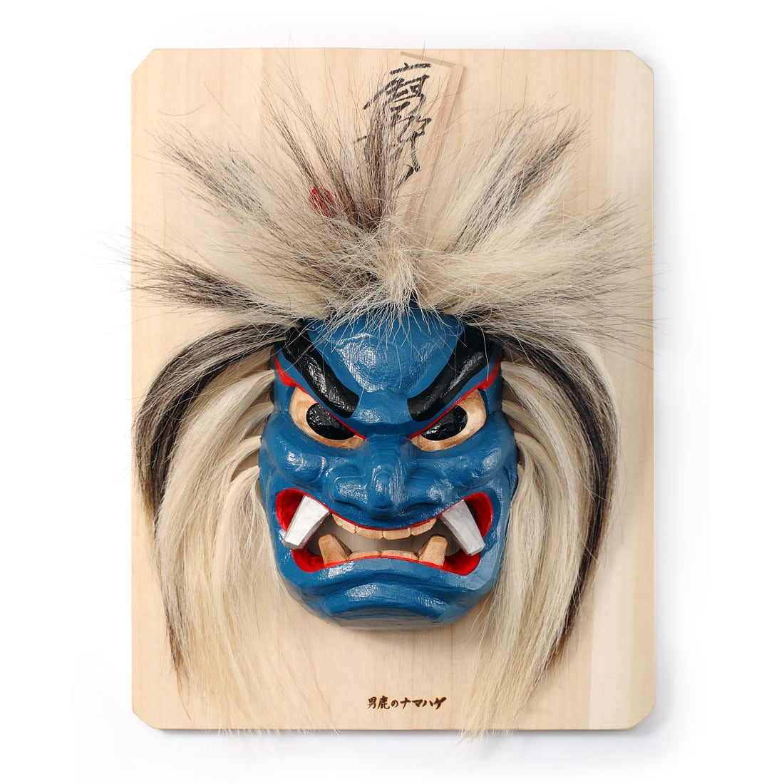 石川千秋作 木掘りなまはげ面 板付き9号(壁掛け用) 青