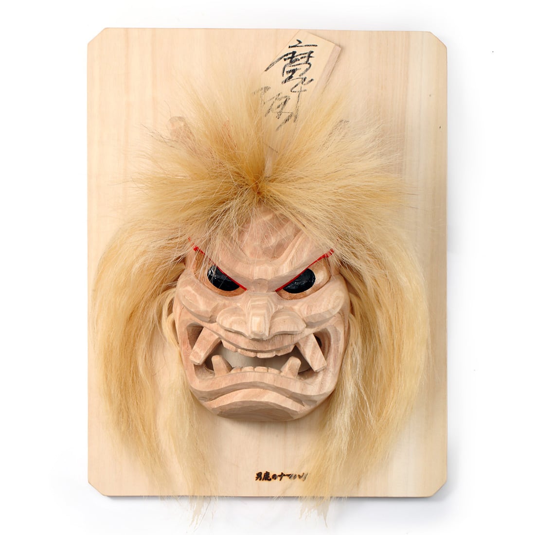 石川千秋作 木掘りなまはげ面 板付き9号(壁掛け用) 白木
