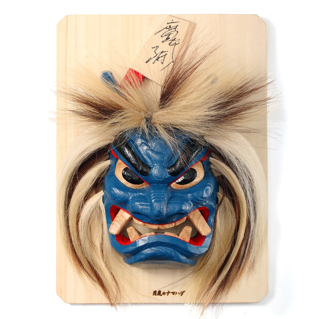 石川千秋作 木掘りなまはげ面 板付き10号(壁掛け用) 青